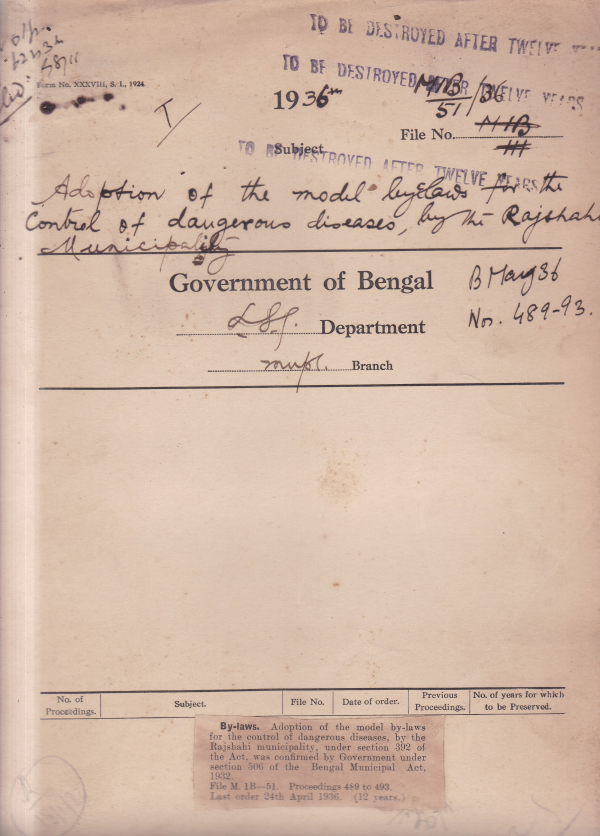 Adoption of the model by laws by the control of dangerous diseases by the Rajshahi Municipality.