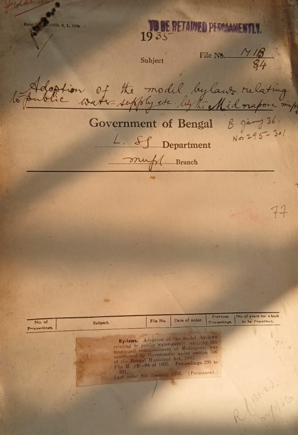 Adoption of the model by-laws regulating to Public Water Supply etc by the Midnapore Municipality.