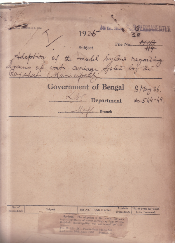 Adoption of the model by laws regarding drains of water-carriage system by the Rajshahi Municipality.