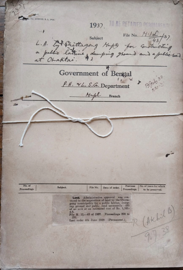 L.A. by the Chittagong municipality for construction of a public latrine, dumping ground and a public road at Chaktai.