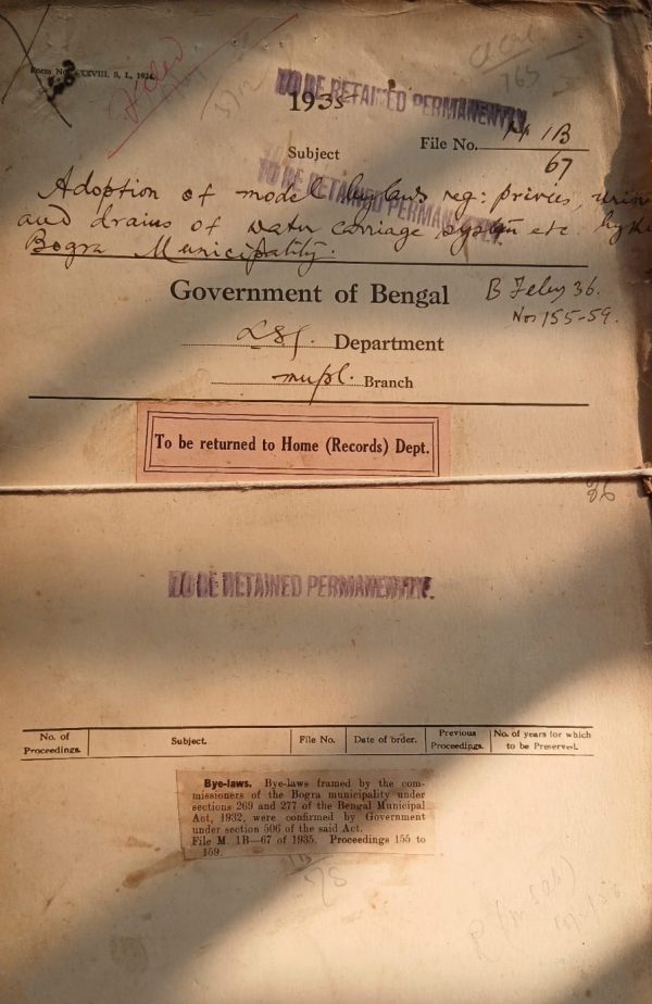 Adoption of the model by-laws regarding privies, urinals and drains of water carriage system etc. by the Bogra Municipality.