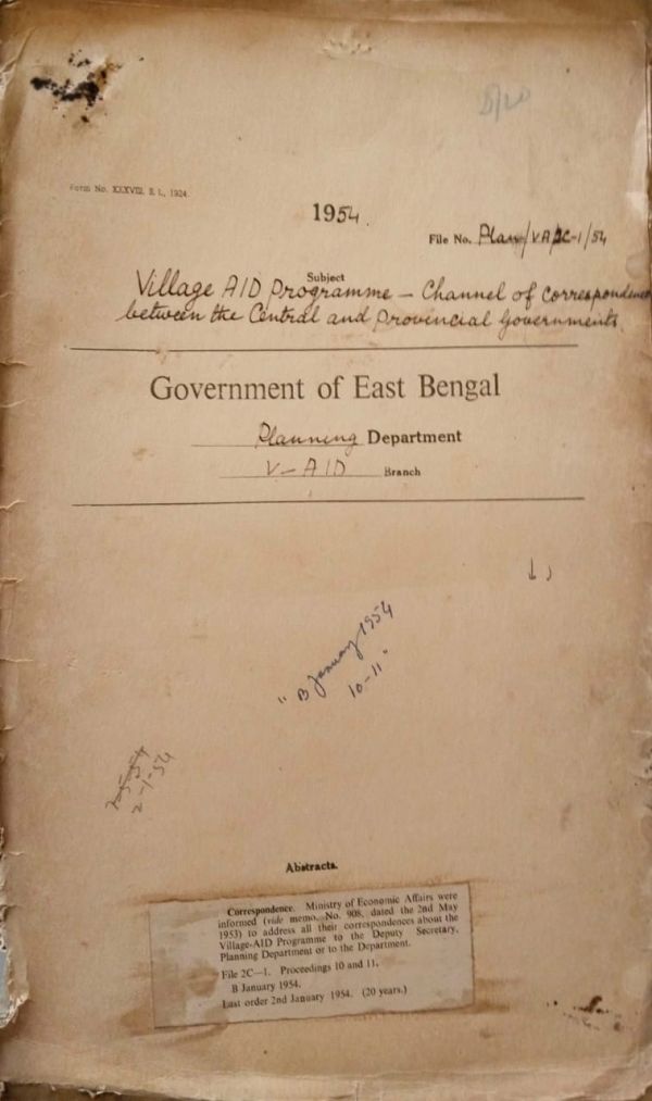 | Rack No. 37, Bundle No. 01, SI No. 14 Procedure for procurement of equipment from TCA. | Rack No. 37, Bundle No. 01, SI No. 15 Maintenance of Stock and Issue Register for T.C.A. equipment. | Rack No. 37, Bundle No. 01, SI No. 16 Actuaries of the Committee appointed to examine in detail certain aspect of village AID programme. | Rack No. 37, Bundle No. 01, SI No. 17 Village AID programme Channel of Correspondence between the central and provincial Government. | Rack No. 37, Bundle No. 01, SI No. 18 Selection of Site for V-AID training institute Jessore. | Rack No. 37, Bundle No. 01, SI No. 19 Acquisition of plots non-237, 240-242 of Khas Mahal land at Jamalpur for construction of buildings for the Training Center at Jamalpur. | Rack No. 37, Bundle No. 01, SI No. 20 Appointment of an-experienced non-official constructive works as project officer of a small project area. |