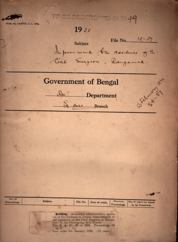 Improvements to the residence of the Civil Surgeon at Rangamati.