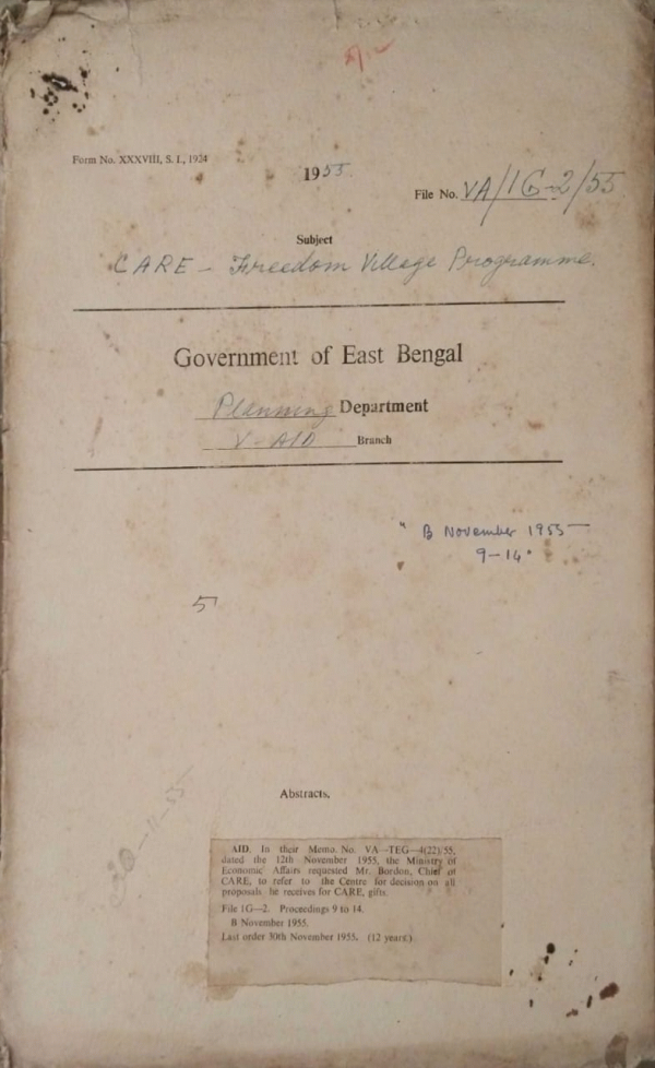| Rack No. 37, Bundle No. 02, SI No. 33 The village agricultural Industrial Development Programme Grant of one additional scholarship in the field of Home Economics tenable at Denmark. | Rack No. 37, Bundle No. 02, SI No. 34 Substitutes to be appointed in place of Extension & Rural Development Assistants. now on deputation under the V-AID programme. | Rack No. 37, Bundle No. 02, SI No. 35 Staff not agreed to by Ford Foundation. | Rack No. 37, Bundle No. 02, SI No. 36 CARE Freedom village Programme. | Rack No. 37, Bundle No. 02, SI No. 37 Furniture for the V-AID Training Institute Tejgaon. | Rack No. 37, Bundle No. 02, SI No. 38 Contains a complete list of equipment of the Agricultural School farm Daulatpur. | Rack No. 37, Bundle No. 02, SI No. 39 Reversion of Mr. Abdul Momen Ahmad Principal, Village AID Training institute Daulatpur to his parent Department. |