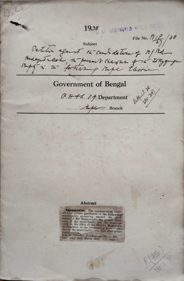 Petition against the Candidature of Md. Hedayetullah Municipality.