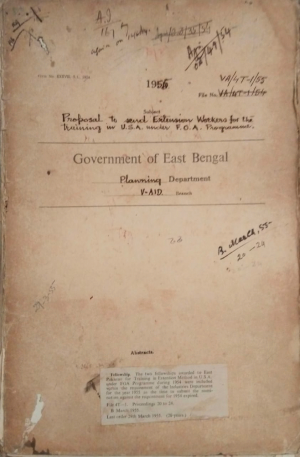 | Rack No. 37, Bundle No. 02, SI No. 40 International Farm Youth Exchange. | Rack No. 37, Bundle No. 02, SI No. 41 Application of Mr. Asaddar Ali Instructor Village AID programme under the Memo No-929 dated the 8th June 1955. | Rack No. 37, Bundle No. 02, SI No. 42 V-AID Programme super remission of work in the Development areas. | Rack No. 37, Bundle No. 02, SI No. 43 Proposal to send Extension workers for the training in U.S.A. under F.O.A. Programme. | Rack No. 37, Bundle No. 02, SI No. 44 Creation of a temporary post at Stenographer for the Director, V-AID programme. | Rack No. 37, Bundle No. 02, SI No. 45 Grant of a permanent advance of Rs. 200/- to the Director V-AID Programme. | Rack No. 37, Bundle No. 02, SI No. 45(A) Village AID-Programme Requirement of FOA equipment for 1954-55. |