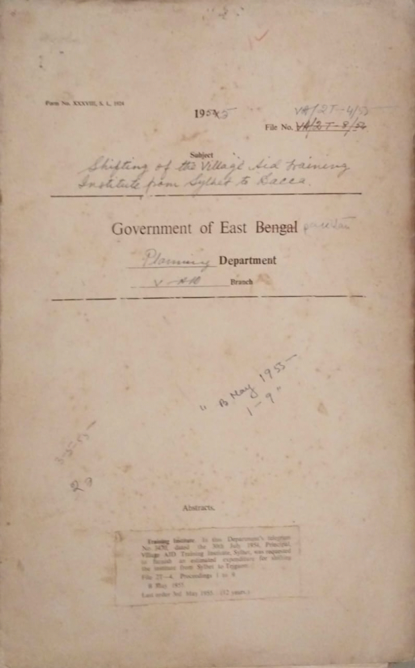 | Rack No. 37, Bundle No. 02, SI No. 59 Planning Boards minutes & papers. | Rack No. 37, Bundle No. 02, SI No. 60 Sanction of Remuneration for writing articles. | Rack No. 37, Bundle No. 02, SI No. 61 Provincial V-AID seminar Bill at reception. | Rack No. 37, Bundle No. 02, SI No. 62 Shifting of the village AID Training Institute from Sylhet to Dacca. | Rack No. 37, Bundle No. 02, SI No. 63 Miscellaneous instructions for the Institutes & Development areas. | Rack No. 37, Bundle No. 02, SI No. 64 Selection of a Successor to Mr. A. H. Khan Director, village AID programme East Bengal. | Rack No. 37, Bundle No. 02, SI No. 65 Daulatpur village AID Training Institute lower Subordinate Establishment. |