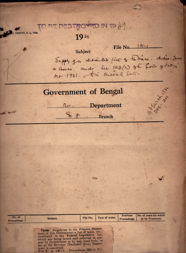 National Archives of Bangladesh SB-Room No 102 | Rack No. 39, Bundle No. 06, SI No. 381 (Browse shelf(Opens below)) | 1 | 1 | 64979 |