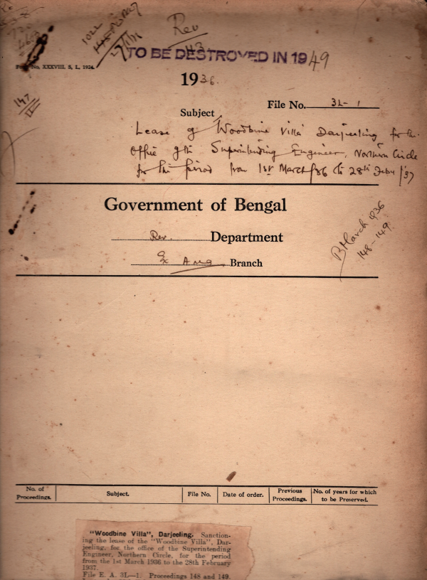 Sanctioning the lease of the woodbira Villa Darjeeling for the office of the superintending Engineer Northern Circle for due period from the 1st March 1936 to the 28th February 1937