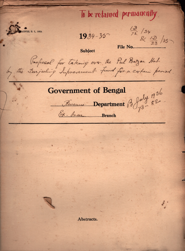 Proposal for taking over the Pul Bazar Hat by the Darjeeling Improvement fund for a certain Period.