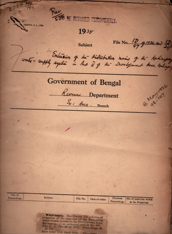 Sanctioning the scheme at extension of the pipe-line of the Kalimpong water-supply system to the Development Area, Kalimpong of an estimated cost of Rs. 600.
