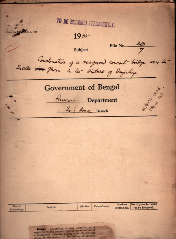 According revised administrative approval to the project for the construction of a reinforced concrete bridge over the Sevoke Jhora in the district of Darjeeling at an estimated cost of Rs. 73377.