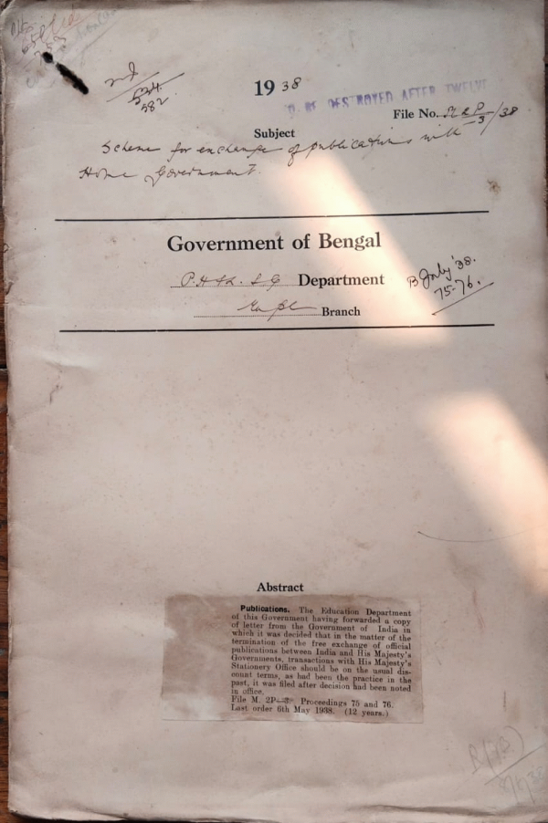 | Rack No. 12, Bundle No. 12, Sl No. 817 Reconstitution, Tollyganj Municipality. | Rack No. 12, Bundle No. 12, Sl No. 818 Payment of Rs. 100/- to the King-Emperors Anti- Tuberculosis Fund by the South Suburban Municipality. | Rack No. 12, Bundle No. 12, Sl No. 819 Adoption of the Model Building bye-laws regulating construction of buildings u/s 329 of B.M. Aet by the Champdany Municipality. | Rack No. 12, Bundle No. 12, Sl No. 820 Scheme for exchange of Publications with govt. | Rack No. 12, Bundle No. 12, Sl No. 821 C. by Mr. W.H. Thomson, regarding the approaches to the New Howrah Bridge. | Rack No. 12, Bundle No. 12, Sl No. 822 Proposal for removal of Babu Kanai Lal Modak, Commissioner, Ranjibanpore Municipality. | Rack No. 12, Bundle No. 12, Sl No. 823 I.A. by the Calcutta Corporation Trust for alignment No. IV (Maniktalla) in ward No. 29 of the Calcutta Municipality. |