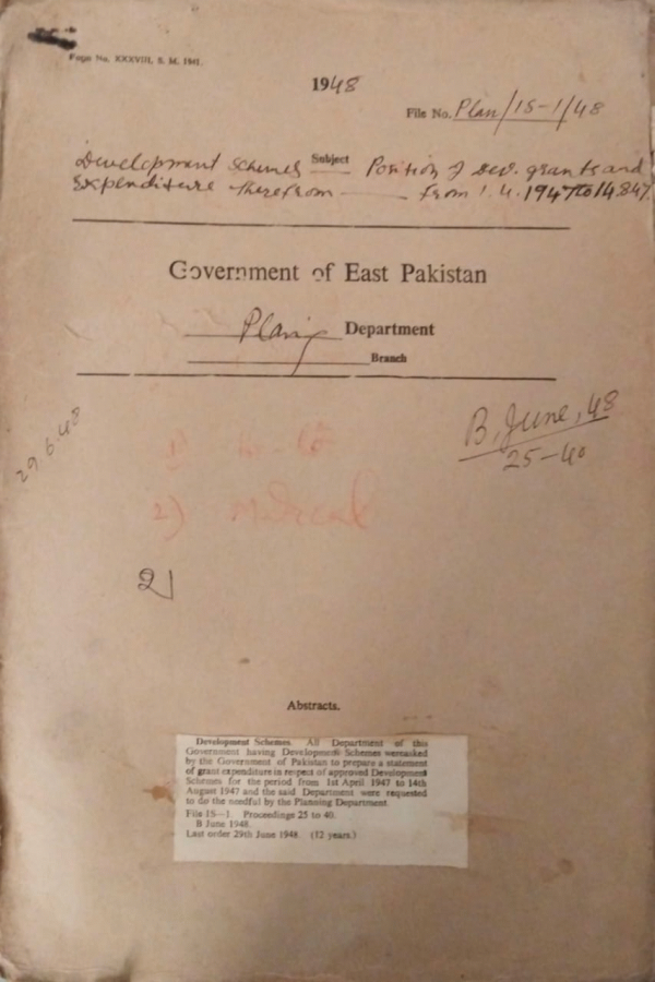 | Rack No. 36, Bundle No. 01, SI No. 05 Cash allowance to the employees under the government of East Bengal. | Rack No. 36, Bundle No. 01, SI No. 06 Association of non-officials with the wonk of the development. | Rack No. 36, Bundle No. 01, SI No. 07 Scientific manpower committee for pakistan. | Rack No. 36, Bundle No. 01, SI No. 08 Restroom of expenditure on development schemes. | Rack No. 36, Bundle No. 01, SI No. 09 The temporary post of Deputy Secretary and two temporary posts of orderlies for the planning Deptt. | Rack No. 36, Bundle No. 01, SI No. 10 Selection of a candidate for the post of Assistant secretary ,development board, East Bengal. | Rack No. 36, Bundle No. 01, SI No. 100 Procedure for obtaining confidential information from banks by officer of the provincial government. |