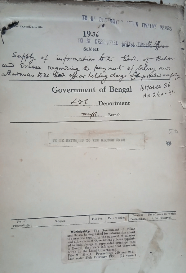 Supply of information to the Govt. of Bihar and Orissa regarding the payment of Salary and allowance to the Govt. officer holding Charge of a Superseded Municipalities.