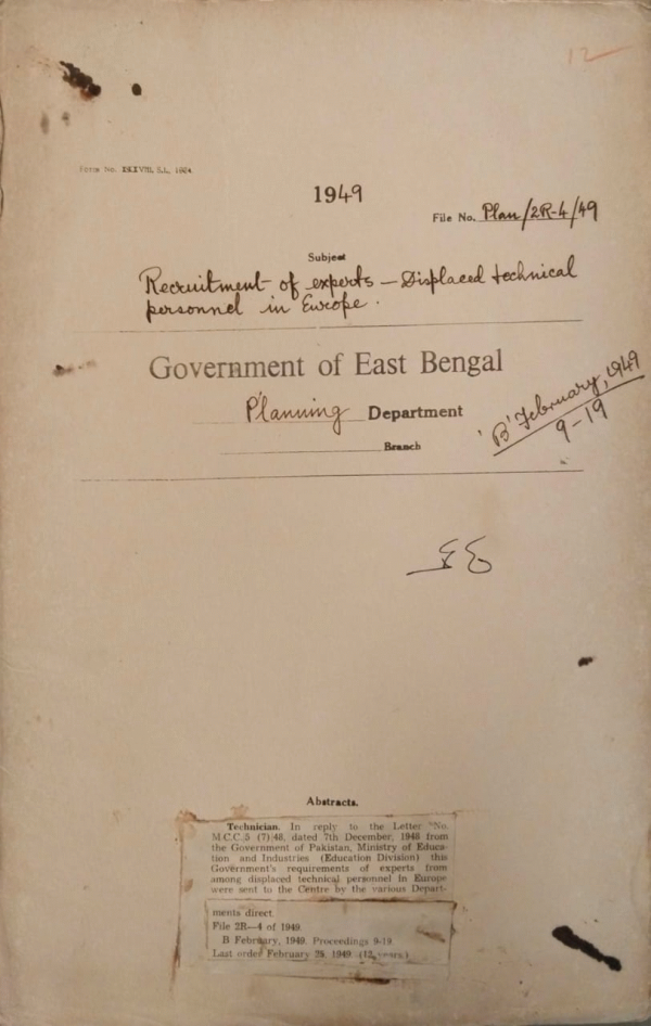 | Rack No. 36, Bundle No. 01, SI No. 30 Appointment of a suitable officers as Scientific liaison officer of the ambassador for Pakistan in Washington. | Rack No. 36, Bundle No. 01, SI No. 31 Creation of a temporary post of Special officer ,planning deptt. | Rack No. 36, Bundle No. 01, SI No. 32 Personal file of Mr. S.M. Ali, Planning deptt. | Rack No. 36, Bundle No. 01, SI No. 33 Recruitment of technicians from displaced European refugees. | Rack No. 36, Bundle No. 01, SI No. 34 Secretariat re-adjustment committee. | Rack No. 36, Bundle No. 01, SI No. 35 Department establishment menials. | Rack No. 36, Bundle No. 01, SI No. 36 Essential supplies (temporary power) Act, 1946. |