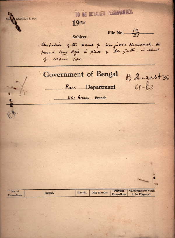 Mutation of the name of Sreejukta Nanoonals the present Mony Raja in the Place of her father in respect of Certain lots.