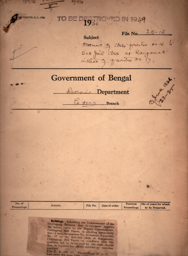 Allotment of clerks quarters no 15 to the sub jail clerk at Rangamati instead of quarters no. 17.