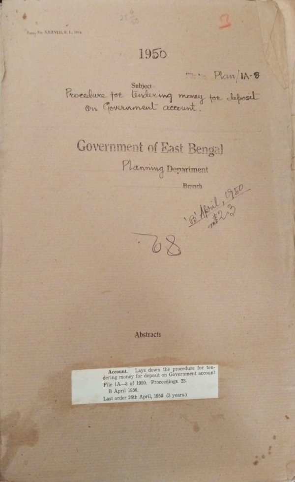 | Rack No. 36, Bundle No. 01, SI No. 72 Development of chittagong port. | Rack No. 36, Bundle No. 01, SI No. 73 Retention of the temporary post of the Joint secretary,planning deptt. for a further of 1 year with effect from 1st March,1949. | Rack No. 36, Bundle No. 01, SI No. 74 Delegation of powers. | Rack No. 36, Bundle No. 01, SI No. 75 Procedure for tendering money for deposit on government account. | Rack No. 36, Bundle No. 01, SI No. 76 British council Bursaries. | Rack No. 36, Bundle No. 01, SI No. 77 U.K. industrial mission meeting of the government for east bengal. | Rack No. 36, Bundle No. 01, SI No. 78 The second pakistan science conference. |