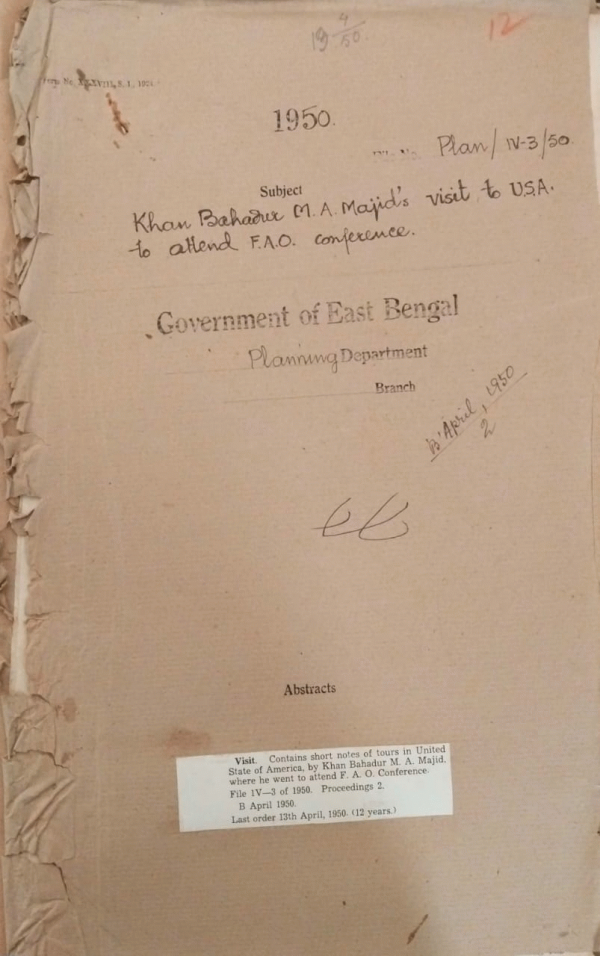 Khan bahadur M.A. Majid visit to U.S.A. to attend F.A.O. Conference.