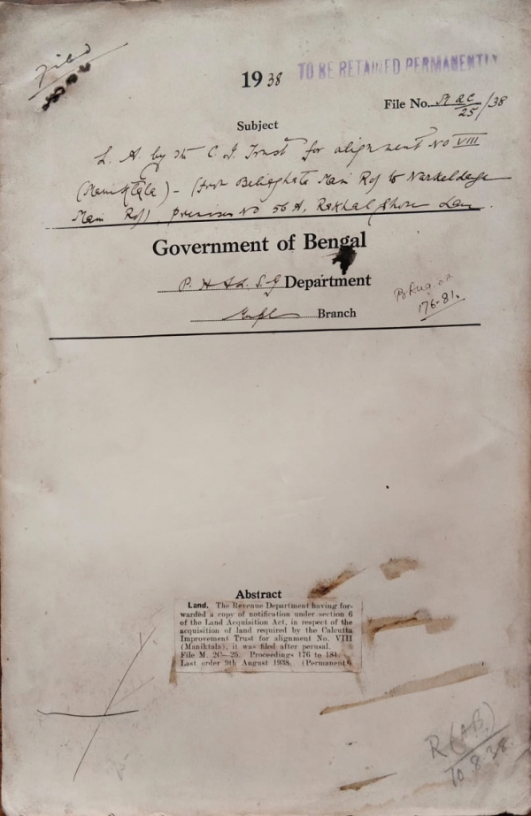 L.A. by the C.I. Trust for alignment No. VIII (Maniktala) from Beliaghata Main Road to Narkeldanga Main Road.