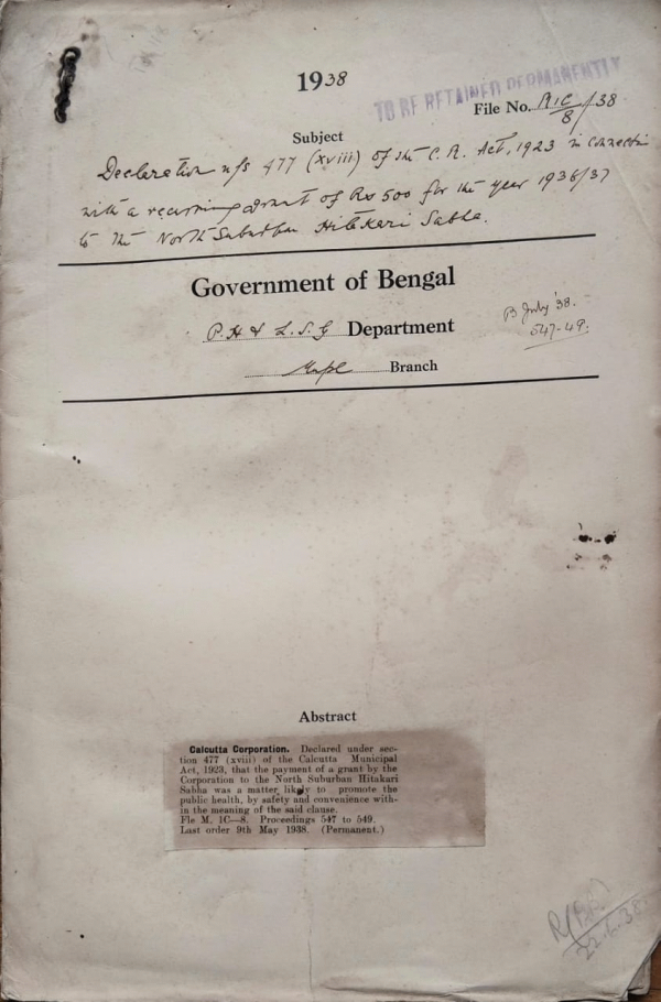 Declaration u/s 477 (XVIII) of the C.M. Act, 1923 in connection with a recurring grant of Rs. 500 for the year 1936/37 to the North Suburban Hitakari Sabha.