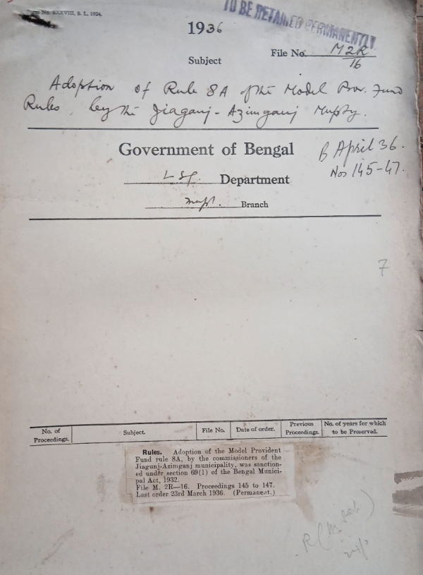 Adoption of Rule 8A of the Model Provident fund Rules, by the Jiaguj-Azimganj Municipality.