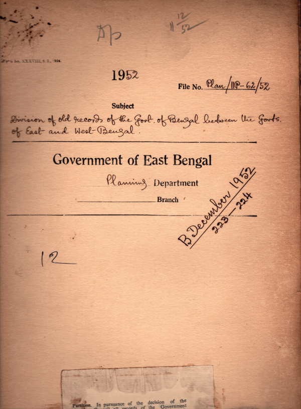 Division of old record of the Govt. of Bengal between the Govt. of East and West Bengal.