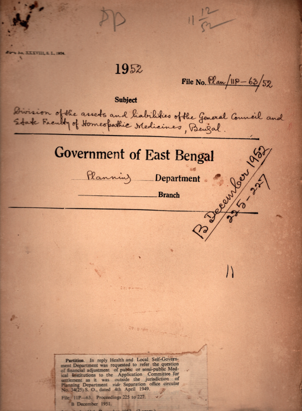 Division assets and liabilities of the General Council and state faculty of Homeopathic medicines, Bengal.