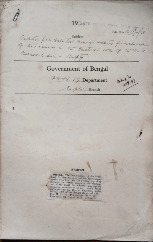 Petition by Ashutosh Banerji and others for inclusion of their names in the Electoral roll of the North barrackpore Municipality.
