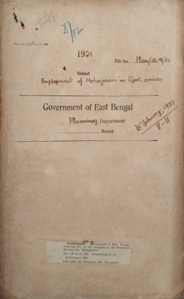| Rack No. 36, Bundle No. 02, SI No. 133 Personal file of Maulvi. A.F.M. Ubaidullah, upper division Assistant. | Rack No. 36, Bundle No. 02, SI No. 134 Channel of correspondence between this government and the government of India and others. | Rack No. 36, Bundle No. 02, SI No. 135 Commonwealth consultative committee list of development schemes for which assistance from the commonwealth fund is sought. | Rack No. 36, Bundle No. 02, SI No. 136 Employment of Mohajereen in govt.services. | Rack No. 36, Bundle No. 02, SI No. 137 Procedure for verification of antecedents of candidates. | Rack No. 36, Bundle No. 02, SI No. 138 Courtesies and facilities to be accorded to distinguished foreign personages arriving in or passing thought pakistan question of making them as state guests. | Rack No. 36, Bundle No. 02, SI No. 139 Appointment of Mr. S.N.H. Rigvi, M.A., E.P.C.S. as assistant secretary, planning deptt. |