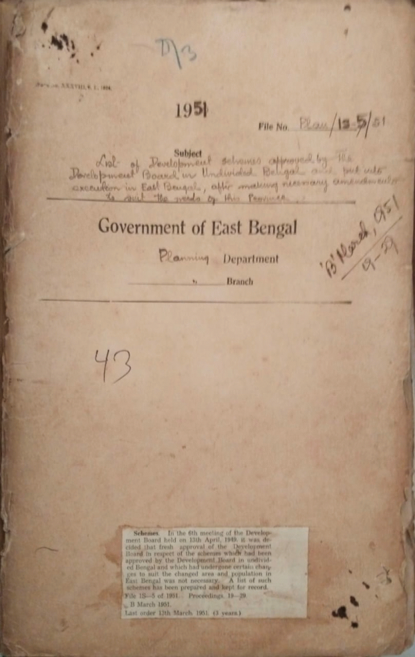 | Rack No. 36, Bundle No. 02, SI No. 145 Collection of statistical data for long range research work. | Rack No. 36, Bundle No. 02, SI No. 146 Matters concerning partition that are to be taken up in the Chief Seceretary conference. | Rack No. 36, Bundle No. 02, SI No. 147 Financing of Development Schemes. | Rack No. 36, Bundle No. 02, SI No. 148 Matters Concerning partition. | Rack No. 36, Bundle No. 02, SI No. 149 Appointment of Mr. Sultan Ahmed EPCS as assistant Secretary Planning Deptt. | Rack No. 36, Bundle No. 02, SI No. 150 Expansion and Modernization of the government Dockyard Narayanganj. | Rack No. 36, Bundle No. 02, SI No. 151 Principle governing promotion of the officers reveling to parent Deppt. from their present employment on deputation. |