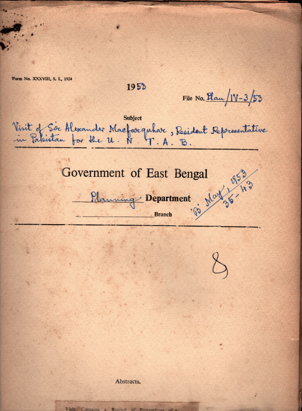 Visit of Sir Alexander Macfarquhar Resident Representative in Pakistan for the U,N. T. A. B