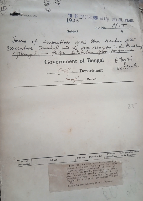 Tours of inspection of the Honorable Member of the Executive Council and the Honorable Ministers in the presidency of Bengal.
