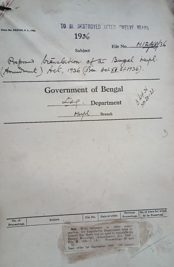 AppointmContribution to the Committee of the Jangigur Agricultural and exhibition by the Dhulian Municipality.ent of a commissioner Rishra Komagar Proposed translation of the Bengal Municipal Act, 1936.Municipality.