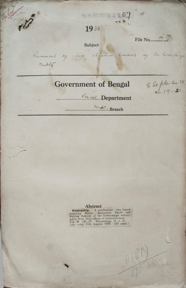 Removal of the elected commissioners of the Gobardanga Municipality.