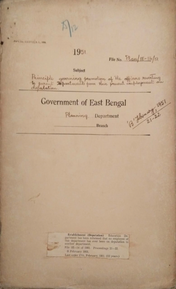 | Rack No. 36, Bundle No. 02, SI No. 148 Matters Concerning partition. | Rack No. 36, Bundle No. 02, SI No. 149 Appointment of Mr. Sultan Ahmed EPCS as assistant Secretary Planning Deptt. | Rack No. 36, Bundle No. 02, SI No. 150 Expansion and Modernization of the government Dockyard Narayanganj. | Rack No. 36, Bundle No. 02, SI No. 151 Principle governing promotion of the officers reveling to parent Deppt. from their present employment on deputation. | Rack No. 36, Bundle No. 02, SI No. 152 Matters concerning partition that are to be taken up in the chief secretaries conference and the separation council proposals of the C.L. & I department. | Rack No. 36, Bundle No. 02, SI No. 152(A) Inter dominion conference decisions arrived at. | Rack No. 36, Bundle No. 03, SI No. 153 Recruitment of technical expert from the interactional refugee organization. |