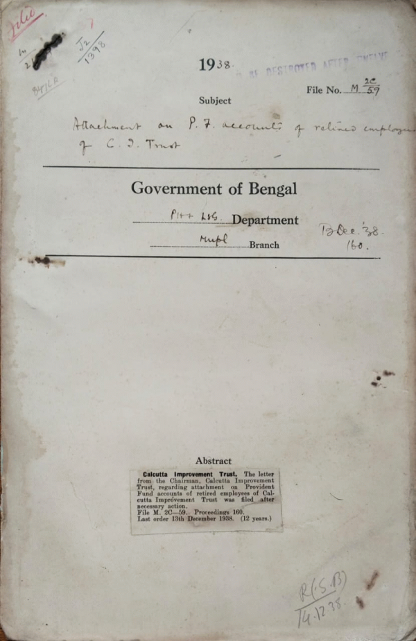 Attachment an P.F. accounts of retired employees of Cal. Improvement Trust.