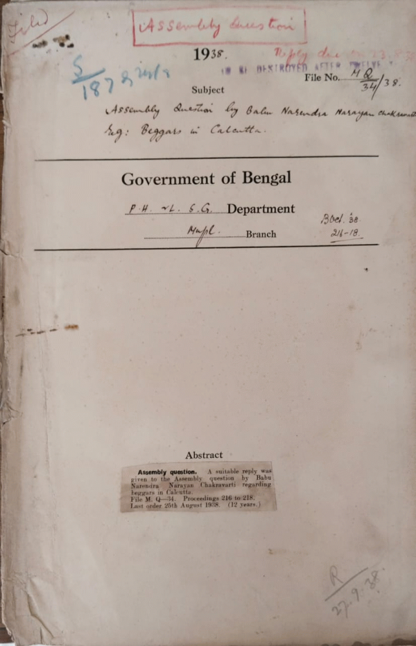 A.Q. by Babu Narndra Narayan Chakravarti regarding Beggars in Calcutta.