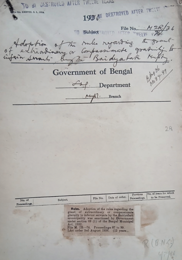 Adoption of the rules regarding the grant of extraordinary to inferior servanta by the Baidyahati municipality
