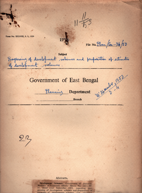 | Rack No. 37, Bundle No. 08, SI No. 402 AID Eleven officers from the Government were sent to India and Japan as members of the Ford Foundation Study Team to observe village Agriculture and Industrial Development Methods | Rack No. 37, Bundle No. 08, SI No. 403 Trainees under the Scheme of Technical Co- operation of Colombo plan advance intimation at dates of arrival to appropriate Pakistan Diplomatic Mission. | Rack No. 37, Bundle No. 08, SI No. 404 Performs for use under the Technical Co-operation Scheme of the Colombo Plan | Rack No. 37, Bundle No. 08, SI No. 405 Programme of development schemes preparation of estimates of development scheme | Rack No. 37, Bundle No. 08, SI No. 406 Social uplift schemes of East- Bengal Placement of funds etc. | Rack No. 37, Bundle No. 08, SI No. 407 Co-ordination of Government activities by the Planning Department | Rack No. 37, Bundle No. 08, SI No. 408 Purchase of books from central publication Branch, Karachi. |