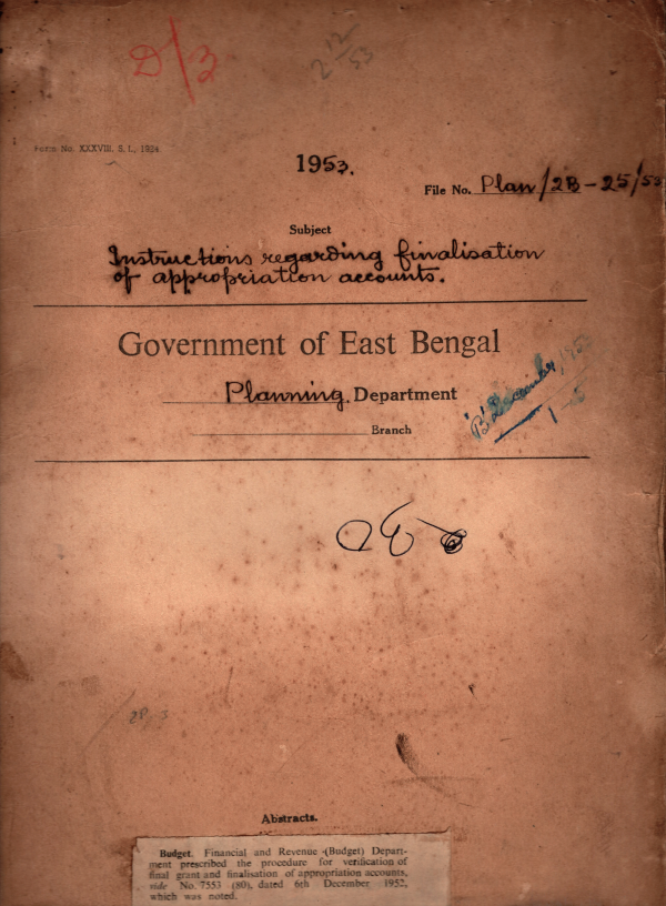 | Rack No. 37, Bundle No. 08, SI No. 406 Social uplift schemes of East- Bengal Placement of funds etc. | Rack No. 37, Bundle No. 08, SI No. 407 Co-ordination of Government activities by the Planning Department | Rack No. 37, Bundle No. 08, SI No. 408 Purchase of books from central publication Branch, Karachi. | Rack No. 37, Bundle No. 08, SI No. 409 Instruction regarding finalization appropriation accounts. | Rack No. 37, Bundle No. 08, SI No. 410 Question of bearing cost on journey undertaken by East- Bengal Scholars and officers to foreign Countries. | Rack No. 37, Bundle No. 08, SI No. 411 Procedure for verification of antecedent of candidates for employment in Government service | Rack No. 37, Bundle No. 08, SI No. 412 Question of re-employment of Government servants after retirement. |