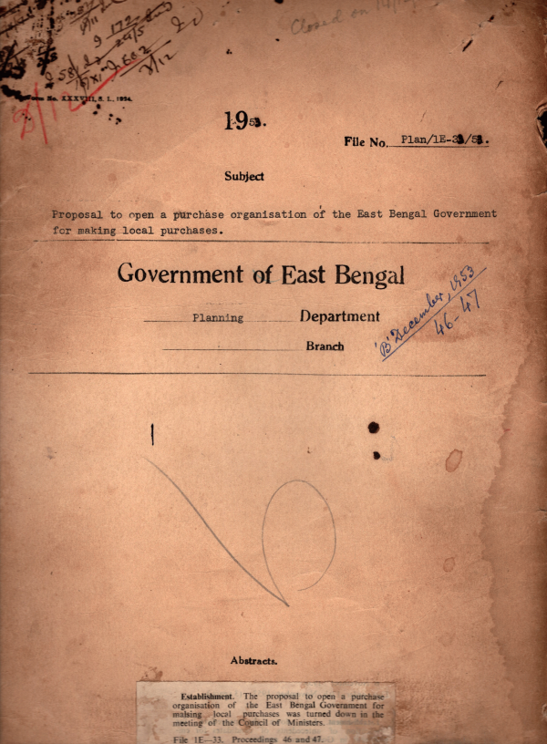 Proposal to open a purchase organization of the East Bengal Government for making local purchases.