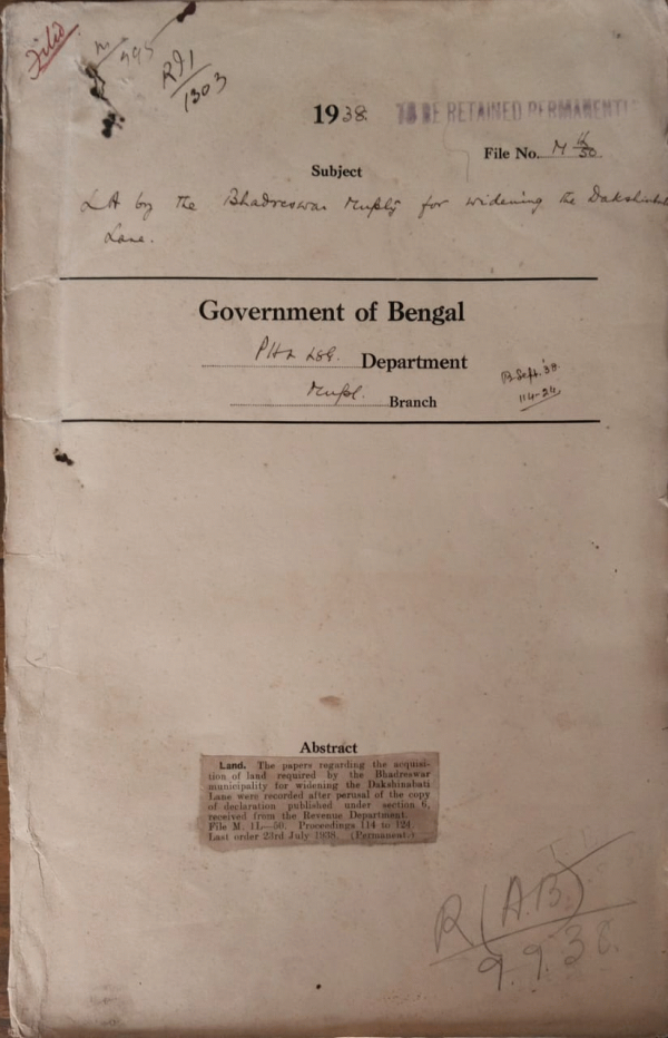 L.A. by the Bhadreswar municipality for widening the Dakshinabati.