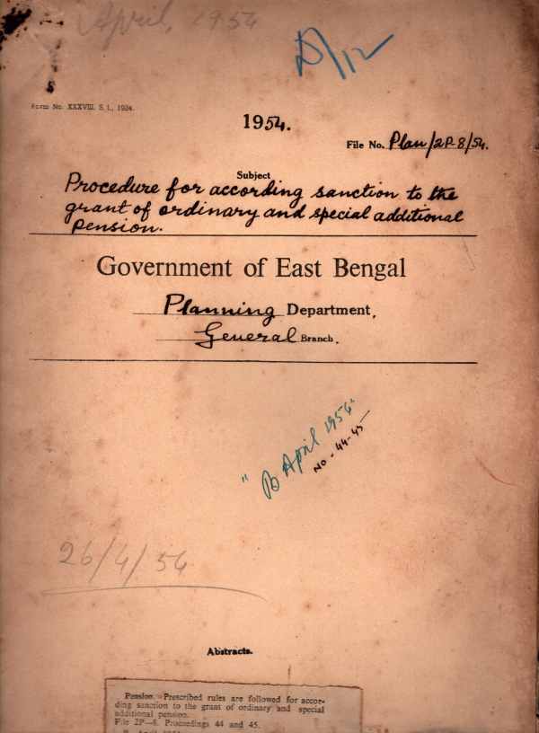 | Rack No. 37, Bundle No. 09, SI No. 424 Procedure to be followed in the matter of Sanctioning provisional appointments. | Rack No. 37, Bundle No. 09, SI No. 425 Medical Attendance and Treatment of govt, Servant. | Rack No. 37, Bundle No. 09, SI No. 426 Payment of Rs. 2,30000 to the United Nations for payment of Subsistence to U. N. Experts. | Rack No. 37, Bundle No. 09, SI No. 427 Procedure for according sanction to the grant of ordinary and special additional pension. | Rack No. 37, Bundle No. 09, SI No. 428 Appointment of Mr. Mohbubar Rahaman M.A. E.P.C.S as an Assistant Secretary in the Planning Department with effect from 26th April 1954. | Rack No. 37, Bundle No. 09, SI No. 429 Proceeding against Peon Habibulla of Statistical Board. | Rack No. 37, Bundle No. 09, SI No. 430 The Proposal for Changing the designation of the Post of Sorter in the P.S.B. and B.C. and 1.1. Dacca into that of Sorting operation was sanctioned by the Government of East Pakistan. |