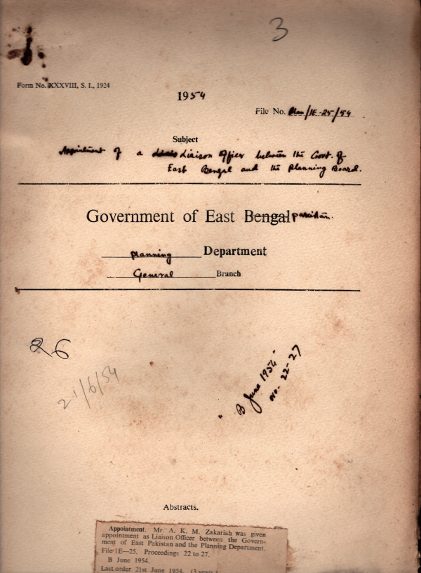 Mr. A.K.M. Zakariah was given appointment as Liaison officer between the Government of East Pakistan and the Planning Department
