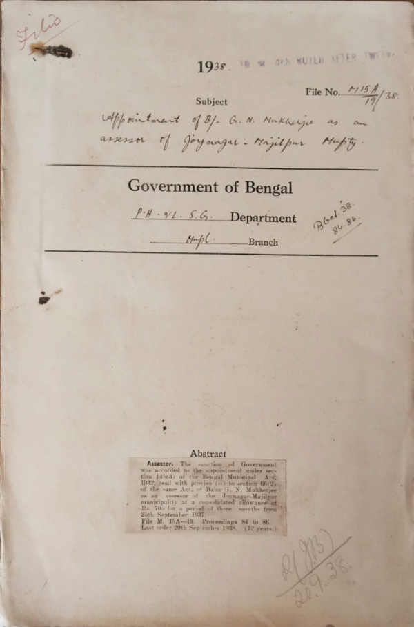 | Rack No. 12, Bundle No. 14, Sl No. 963 Removal of disqualification of Mr. Srinivas for election as a councilor of the Cal. Corporation. | Rack No. 12, Bundle No. 14, Sl No. 964 Writing off of a Sum of Rs. 514 from the Comilla Municipal fund. | Rack No. 12, Bundle No. 14, Sl No. 965 Declaration of Landowne Road Extension as a main thorough fare. | Rack No. 12, Bundle No. 14, Sl No. 966 Appointment of B/- G.N. Mukherjee as an assessor of Jaynagar Majilur Municipality. | Rack No. 12, Bundle No. 14, Sl No. 967 Delay in Submission of Copies of proceedings of the meetings of the Cal. Corp. to grants. | Rack No. 12, Bundle No. 14, Sl No. 968 Election of a Commissioner Berhampore Municipality. | Rack No. 12, Bundle No. 14, Sl No. 969 A.Q. by Mr. Jasimuddin Ahmed, M.L.A. regarding Affairs of the C.I.T. |