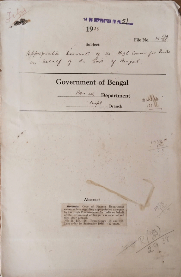Appropriation Accounts of the High Commissioner for India an behalf of the govt. of Bengal.