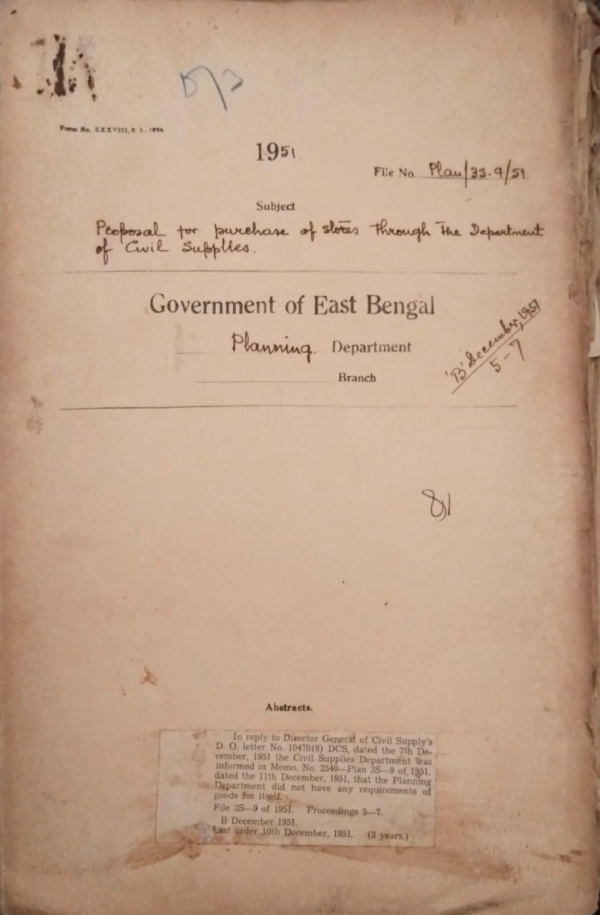 | Rack No. 36, Bundle No. 04, SI No. 200 Fellowship offered by the government of Canada as a contribution to the Colombo plan for technical assistance. | Rack No. 36, Bundle No. 04, SI No. 201 Retention of the temporary post of assistant Secretary planning Department. | Rack No. 36, Bundle No. 04, SI No. 202 Offer of economic assistance under the Colombo plan. | Rack No. 36, Bundle No. 04, SI No. 203 Proposal for purchase of stores through the Department of Civil Supplies. | Rack No. 36, Bundle No. 04, SI No. 204 Recruitment in vacancies reserved war service candidates. | Rack No. 36, Bundle No. 04, SI No. 205 Opening of provident fund account by Mr. Zainal Abedin upper division. | Rack No. 36, Bundle No. 04, SI No. 206 Six- Year Development Programme of Pakistan. |