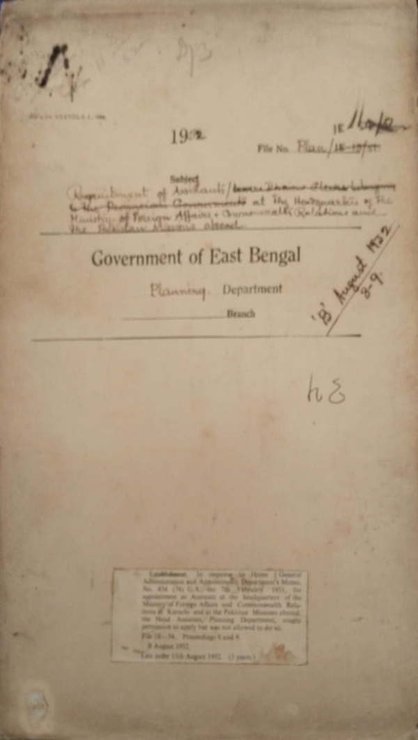 | Rack No. 36, Bundle No. 04, SI No. 228 Review of the working of the Colombo plan. | Rack No. 36, Bundle No. 04, SI No. 229 Requirement of High speed diesel oil during 1951. | Rack No. 36, Bundle No. 04, SI No. 230 Transfer of records and files to Dacca. | Rack No. 36, Bundle No. 05, SI No. 231 Recruitment of assistants/lower division clerksbelonging to the provincial governments at the headquarters of ministry of foreign affairs. | Rack No. 36, Bundle No. 05, SI No. 232 Procedure to the followed in initiating enquiries against government servants. | Rack No. 36, Bundle No. 05, SI No. 233 Recruitment of German Technicians. | Rack No. 36, Bundle No. 05, SI No. 234 Appointment of poof. I.S. Turner as officers on special jute in planning department for preparing a. |